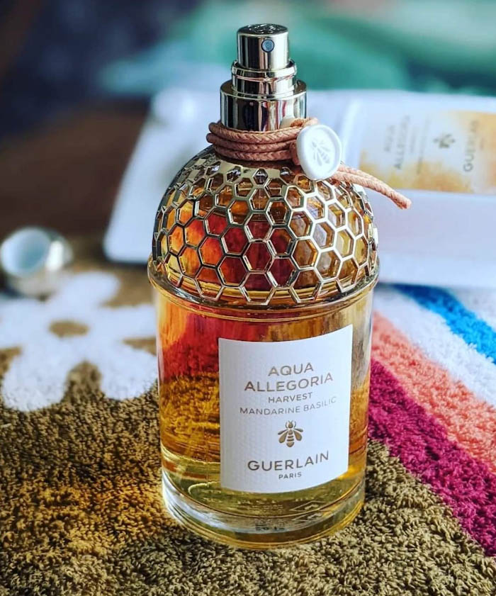 Limited Aqua Allegoria Mandarine Basilic Harvest (2023) by Guerlain opens with a refreshing aroma of green tea and soft tangerine peel, but quickly makes it clear that it is, along with its brother Aqua Allegoria Forte Mandarine Basilic born a year earlier, a gourmet perfume. The tone of the harvest version, however, is higher, and the character is lighter. Tangerine and pear juices flow over the lightest surface of the meringue, and a basil leaf sets off the magnificence.